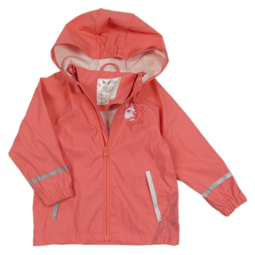 Korálová nepromokavá bunda s jednorožcom a kapucňou Lupilu