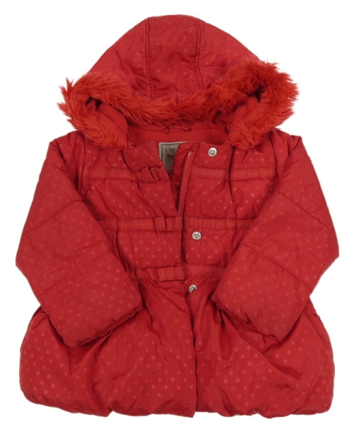 • Červená bodkovaná á šušťáková zimná bunda s kapucňou s kožešinou Next