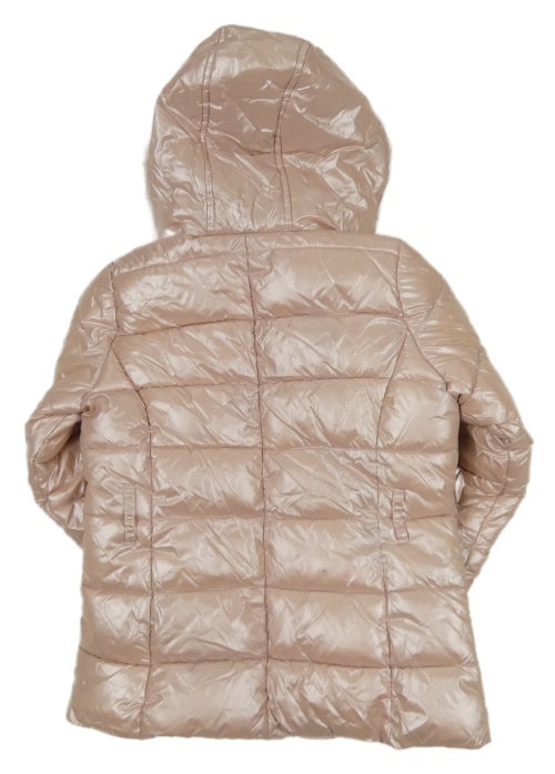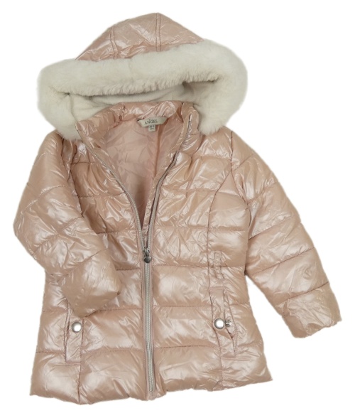 Svetloružová lesklá šušťáková zimná bunda s kapucňou s kožešinou E-Vie