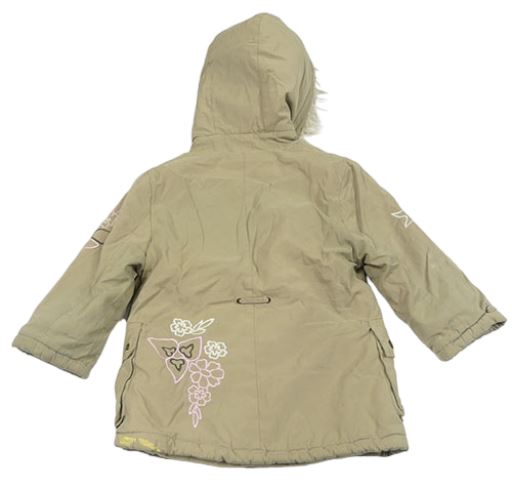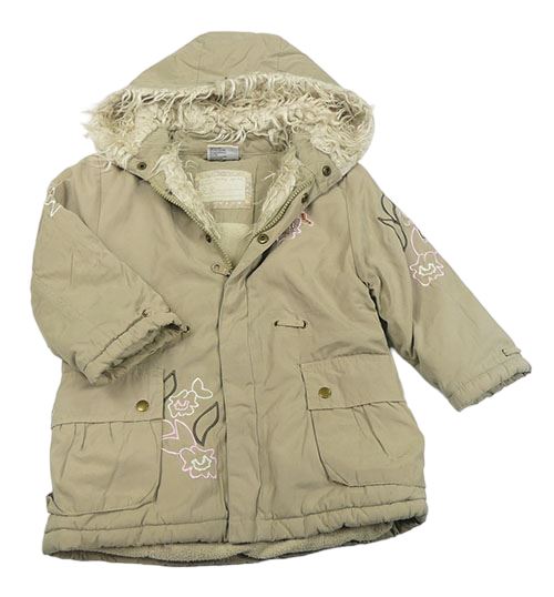 • Béžová šušťáková zimná parka s kvietkami a korálkami a kapucňou Topolino