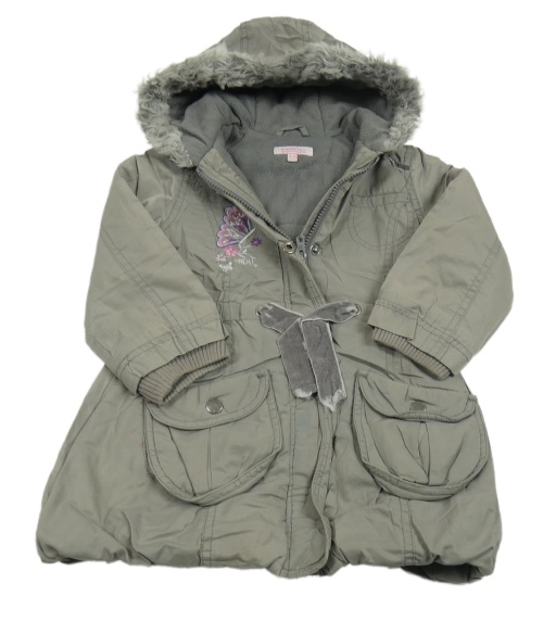 Sivý šušťákový zateplený kabát s motýlom a kapucňou Bluezoo