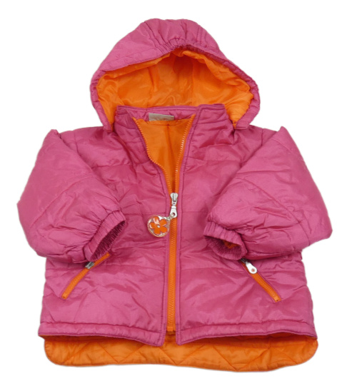 Ružovo-oranžová šušťáková zateplená bunda s kapucňou