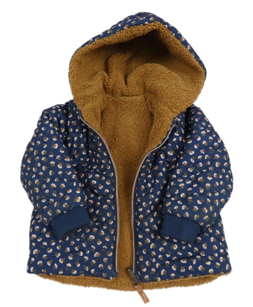 • Tmavomodrá prešívaná šušťáková zimná obojstranná bunda s kvietkami a kapucňou noppies
