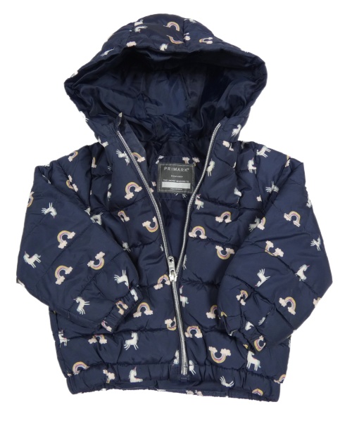 Tmavomodrá šušťáková zateplená bunda s duhami a kapucňou Primark