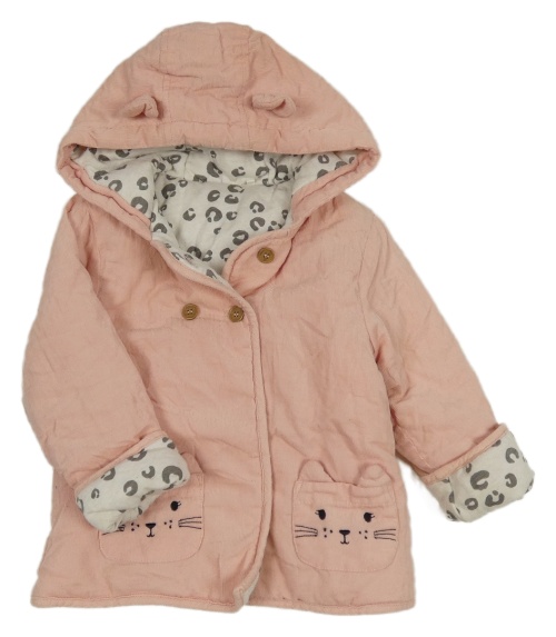 Svetloružová zateplená bunda s mačkami a kapucňou Tu