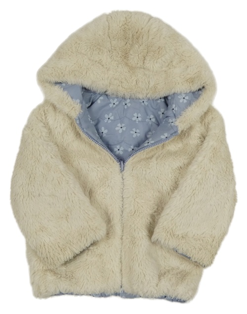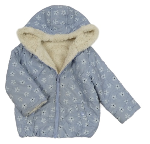 Svetlomodrá kvetovaná šušťáková zateplená obojstranná bunda s kapucňou