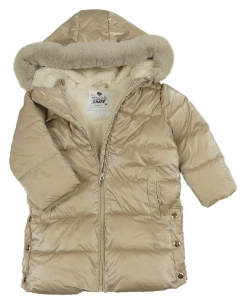Béžový lesklý šušťákový zimný kabát s kapucňou F&F