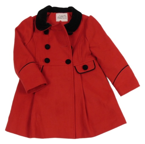 Červený flaušový podšitý kabát s golierikom St. Bernard