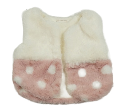 Bielo-ružová chlpatá kožušinová podšitá vesta s bodkami