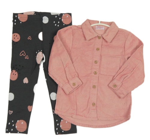 -Nové 2set- ružová menšestrová košeľová bunda+ sivé legíny s bodkami a srdiečkami so cute