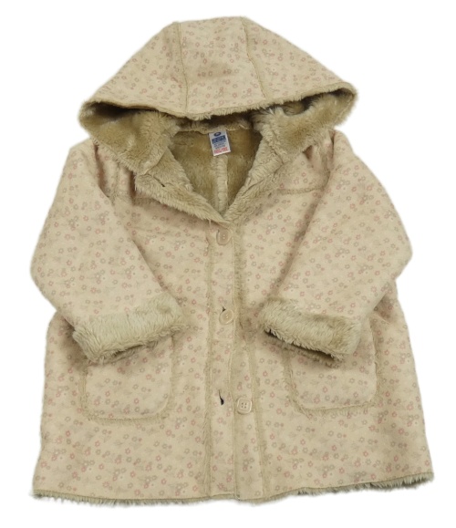 Béžový semišový zateplený květovaný kabátek s kapucňou