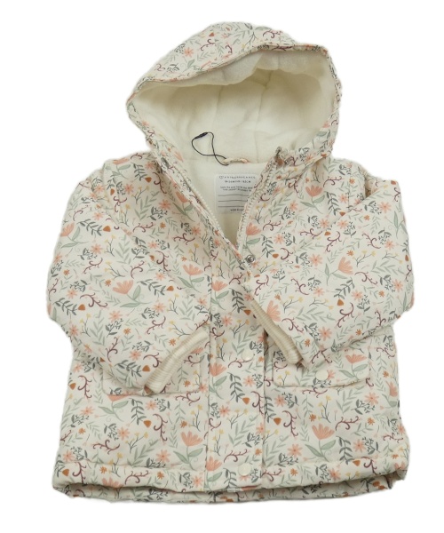 Smotanová kvetovaná šušťáková zateplená bunda s kapucňou Primark