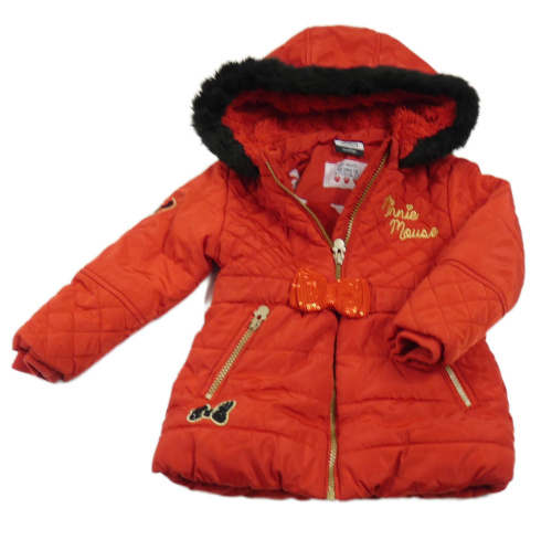 • Červený šusťákový zimní kabátek s mašlou a kapucňou s kožešinou George