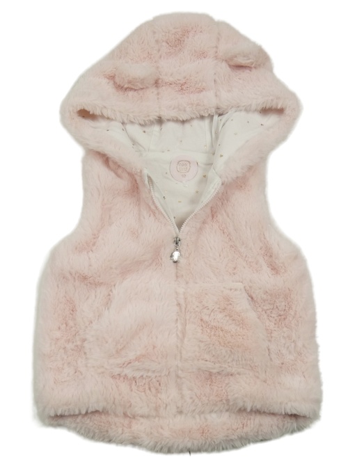 Svetloružová kožušinová podšitá vesta s kapucňou s uškami coolclub