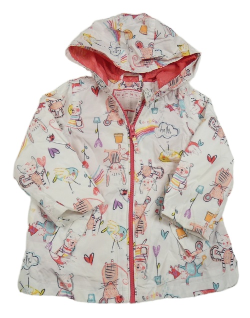 Biela šušťáková jarná bunda so zvířaty a kapucňou Nutmeg