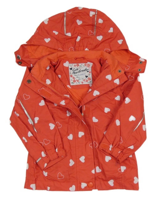 Červená šušťáková jarná bunda so srdiečkami a kapucňou TCM