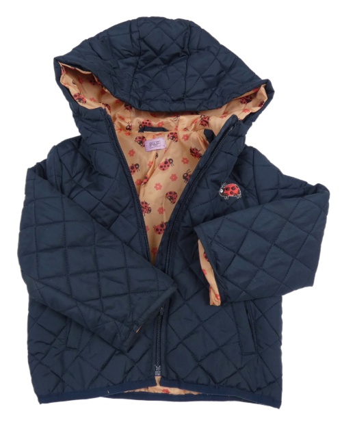 • Tmavomodrá šušťáková prešívaná zateplená bunda s lienkou a kapucňou F&F