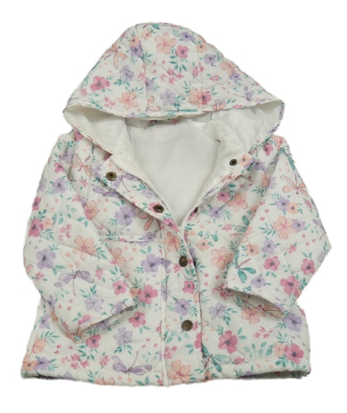 Biela šušťáková prešívaná zateplená parka s kvietkami a kapucňou
