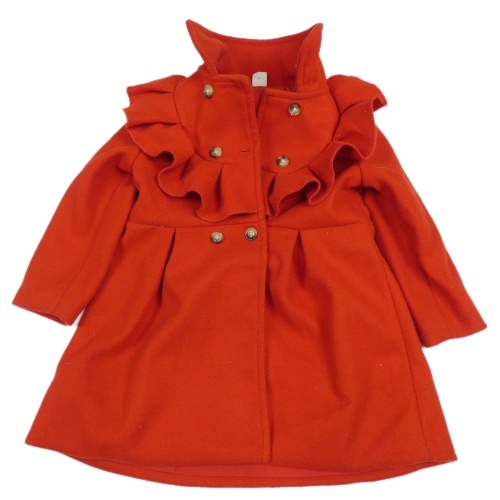 Červený flaušový kabát s volánikmi shein