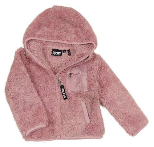 Svetloružová chlpatá prepínaci mikina s kapucňou DKNY