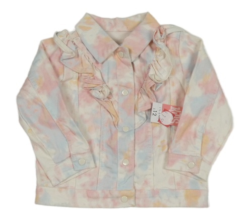 Nové - Bielo-farebná batikovaná rifľová bunda s volánikmi Little kids