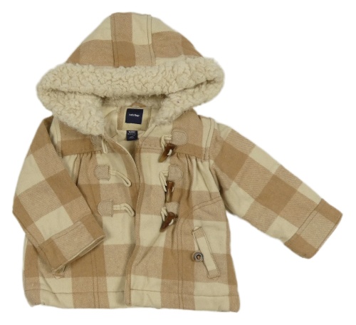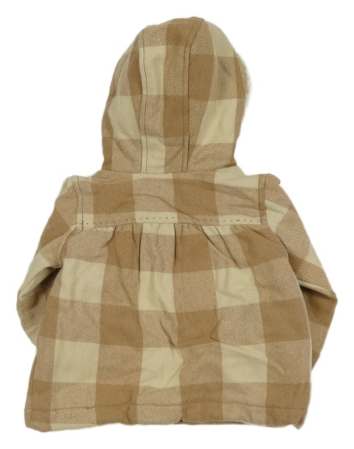 • Hnedo-smotanová kockovaná vlnená zateplená bunda s kapucňou s kožešinou GAP