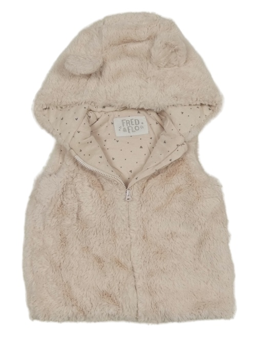 Svetloružová kožušinová zateplená vesta s kapucňou s uškami F&F