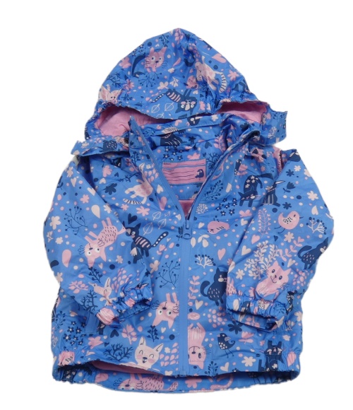 Modrá šušťáková jarná bunda s mačkami a kapucňou Pocopiano