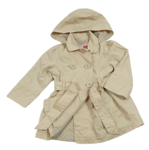 Béžový plátenný jarný kabát s opaskom a kapucňou C&A