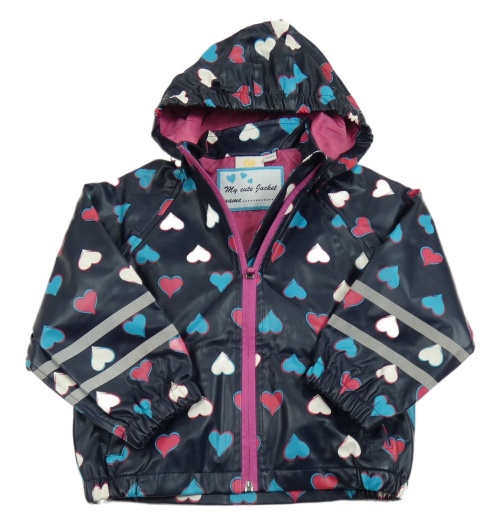 Tmavomodrá nepromokavá jarná bunda so srdiečkami a kapucňou Kids