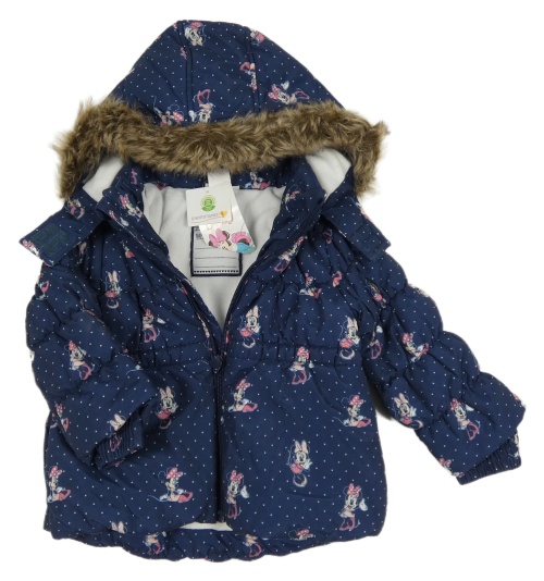 • Nové - Tmavomodrá bodkovaná á šušťáková zimná bunda s Minnie a kapucňou s kožešinou Disney