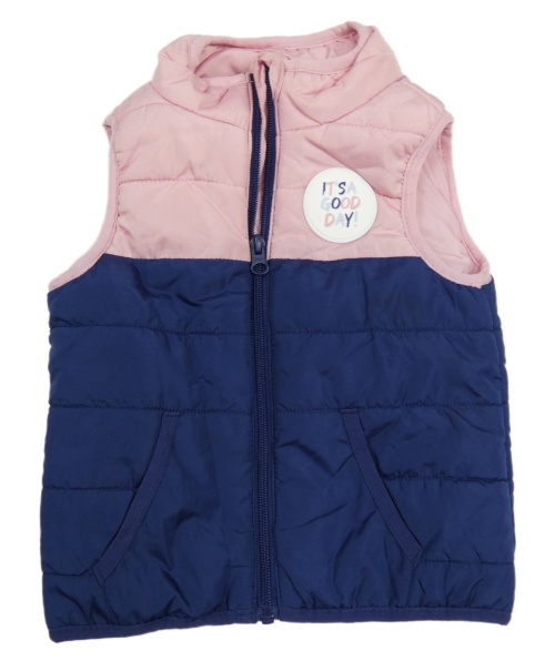 Tmavomodro-svetloružová prešívaná šušťáková zateplená vesta s nášivkou Lily & Dan