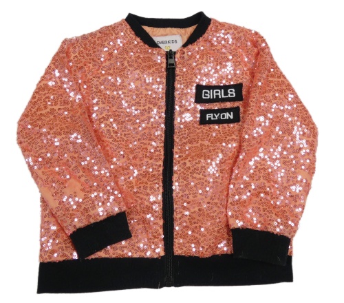 Růžovo-černý flitrový jarní bomber s nápisom