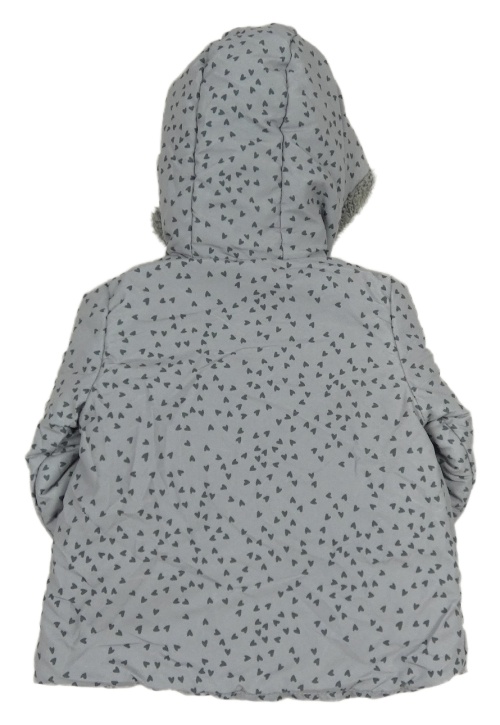 Sivá vzorovaná šušťáková zimná bunda so srdiečkami a kapucňou Babaluno