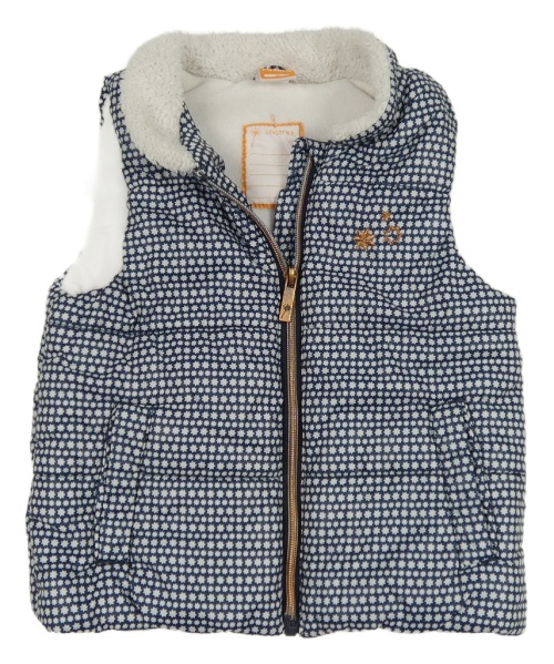 Tmavomodro-biela vzorovaná šušťáková zateplená vesta