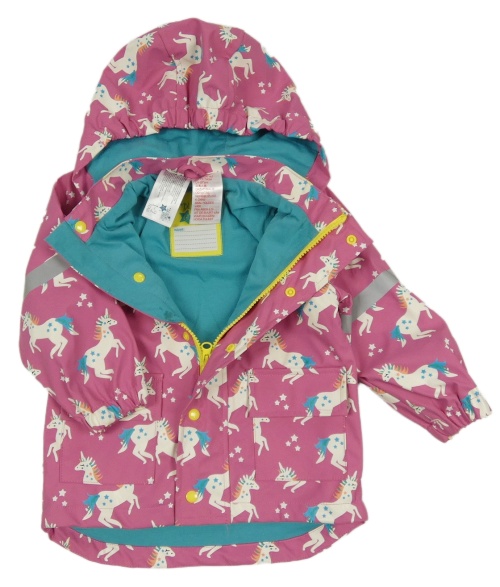 Ružová nepromokavá jarná bunda s jednorožcami a kapucňou