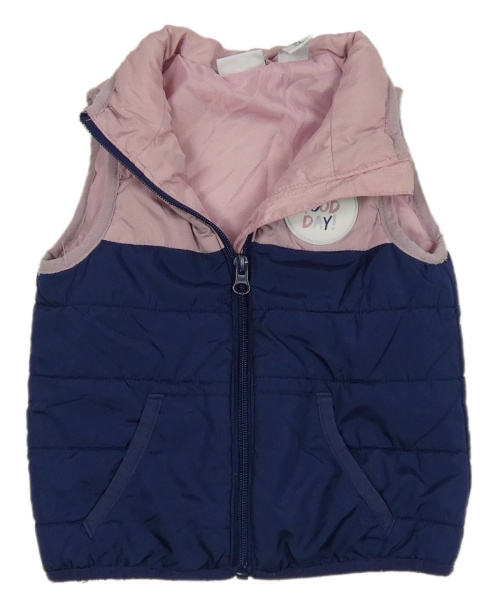 Starorůžovo-tmavomodrá šušťáková zateplená vesta s nášivkou Lily & Dan