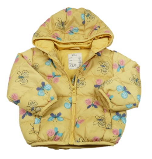 Žltá šušťáková zimná bunda s motýlikmi a kapucňou M&S