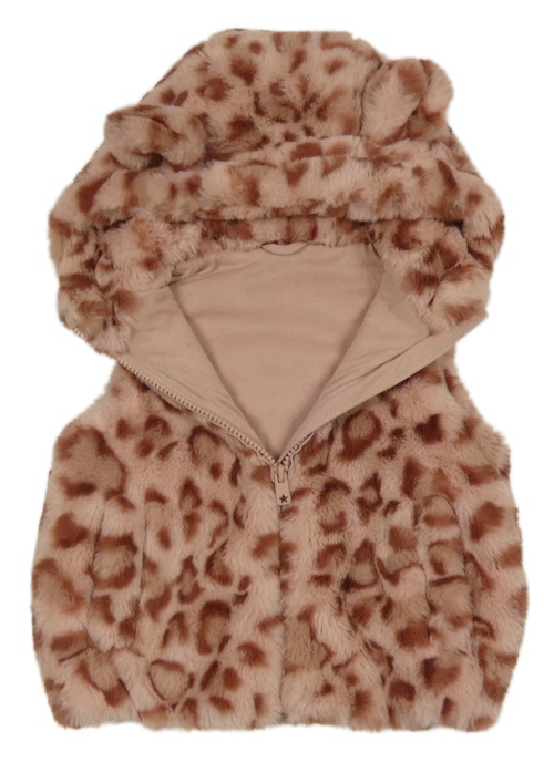 Ružovo-hrdzavá vzorovaná kožušinová podšitá vesta s kapucňou s uškami Nutmeg