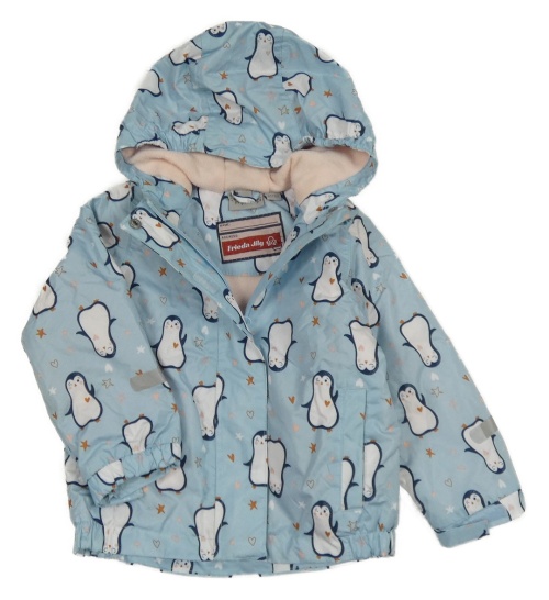 Svetlomodrá šušťáková zateplená bunda s tučňáky a kapucňou Impidimpi
