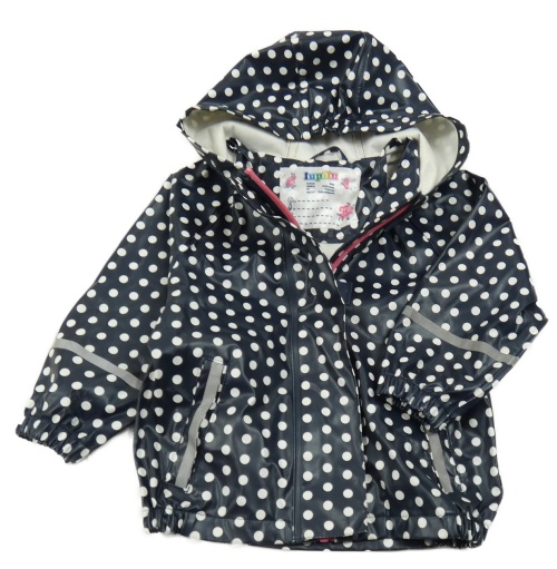 Tmavomodro-biela bodkovaná á vodeodolná jarná bunda s kapucňou Lupilu