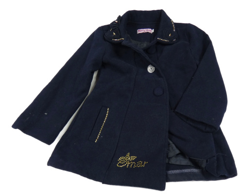Tmavomodrý flaušový jarný kabát s kamienkami a hroty