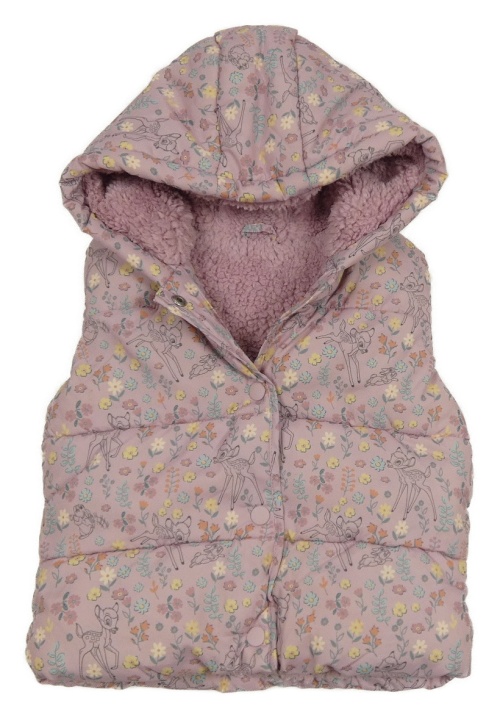 Lila kvetovaná šušťáková zateplená vesta s Bambim a kapucňou George