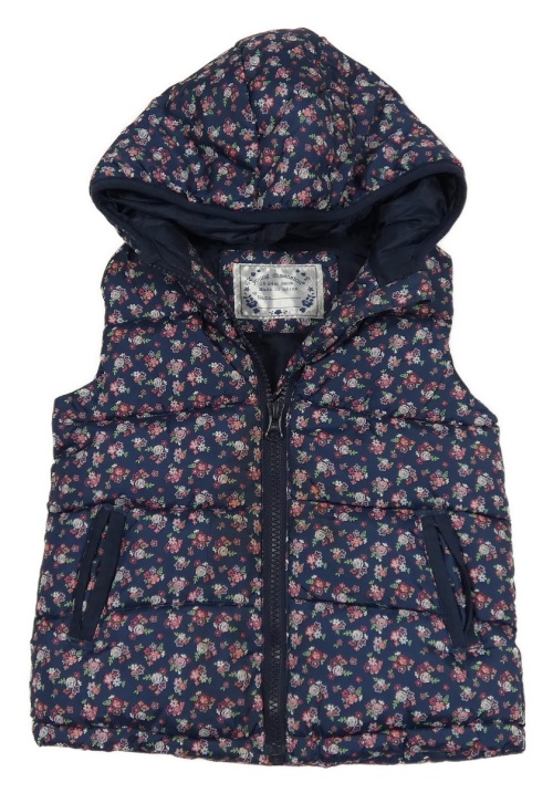 Tmavomodrá kvetovaná šušťáková zateplená vesta s kapucňou Yd.