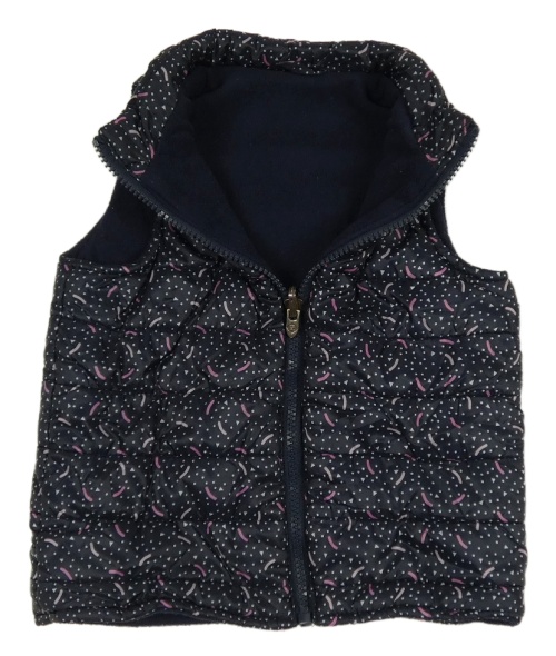Tmavomodrá bodkovaná á vzorovaná prešívaná šušťáková zateplená vesta