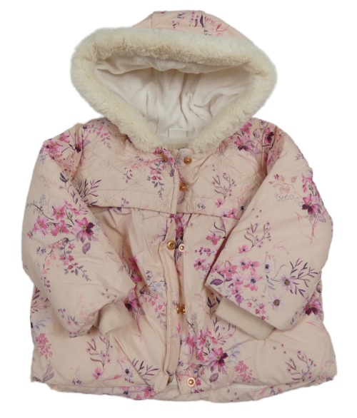 Svetloružová šušťáková kvetovaná zimná bunda s kapucňou Next