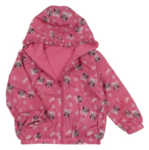 Ružová šušťáková jarná bunda s Minnie a srdiečkami a kapucňou Prénatal