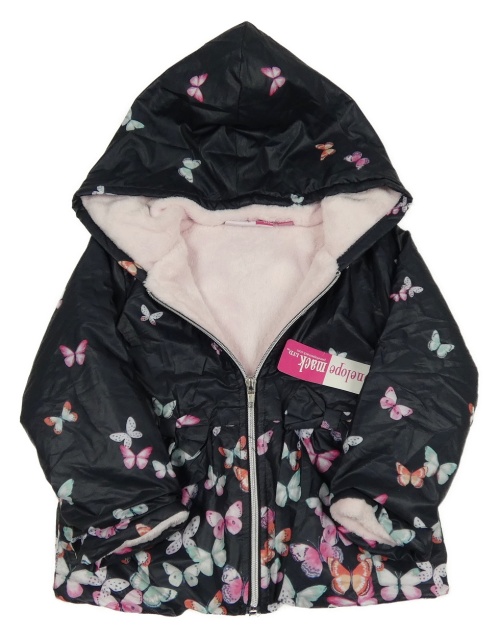Nové - čierna šušťáková zateplená bunda s motýlikmi a mašľami a kapucňou penelope mack