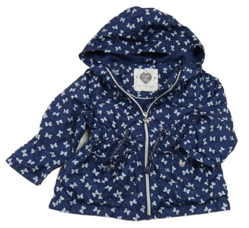 • Tmavomodrá bodkovaná á šušťáková jarná parka s mašličkami a kapucňou F&F