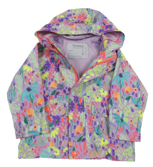 Lila-farebná kvetovaná šušťáková jarná bunda s kapucňou Nutmeg